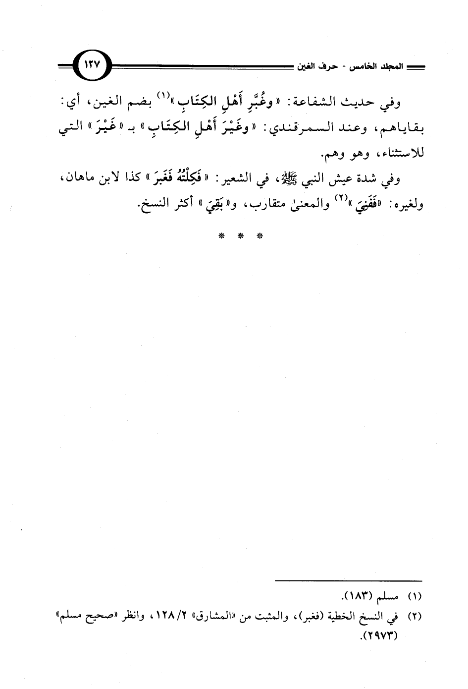 (¬2) في النسخ الخطية (فغبر)، والمثبت من "المشارق" 2/ 128، وانظر "صحيح مسلم" (2973).