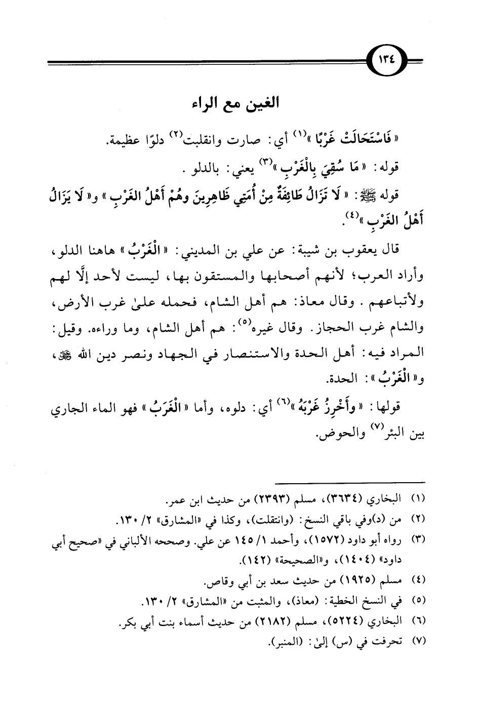 قال يعقوب بن شيبة: عن علي بن المديني: "الْغَرْبُ" هاهنا الدلو، وأراد العرب؛ لأنهم أصحابها والمستقون بها, ليست لأحد إلَّا لهم ولأتباعهم. وقال معاذ: هم أهل الشام، فحمله على غرب الأرض، والشام غريب الحجاز. وقال غيره (¬5): هم أهل الشام، وما وراءه. وقيل: المراد فيه: أهل الحدة والاستنصار في الجهاد ونصر دين الله عزوجل، و"الْغَرْبُ": الحدة.