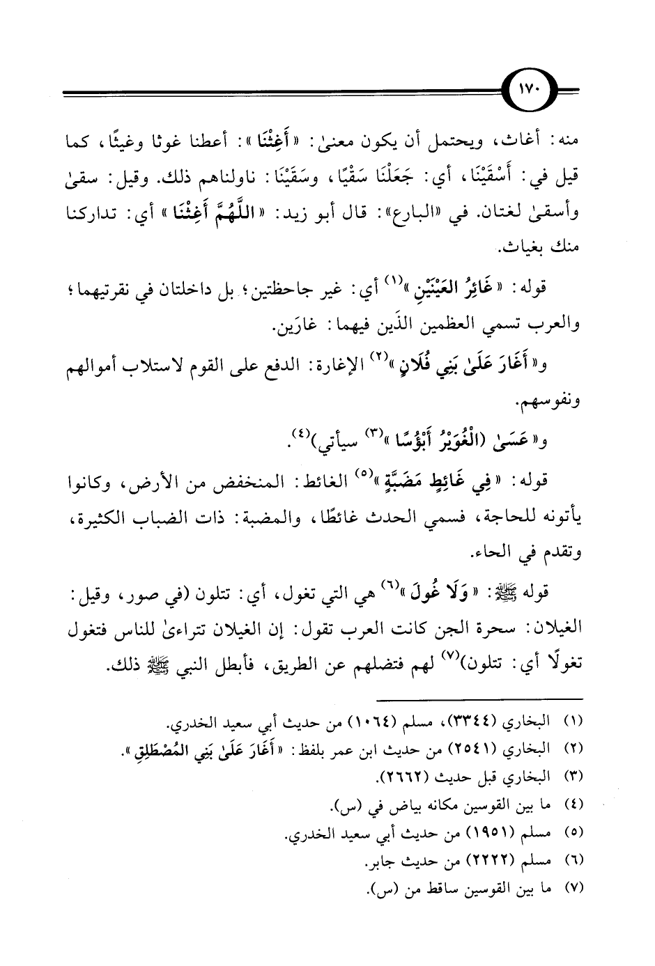 قوله - صلى الله عليه وسلم -: "وَلَا غُولَ" (¬6) هي التي تغول، أي: تتلون (في صور، وقيل: الغيلان: سحرة الجن كانت العرب تقول: إن الغيلان تتراءى للناس فتغول تغولًا أي: تتلون) (¬7) لهم فتضلهم عن الطريق، فأبطل النبي - صلى الله عليه وسلم - ذلك.