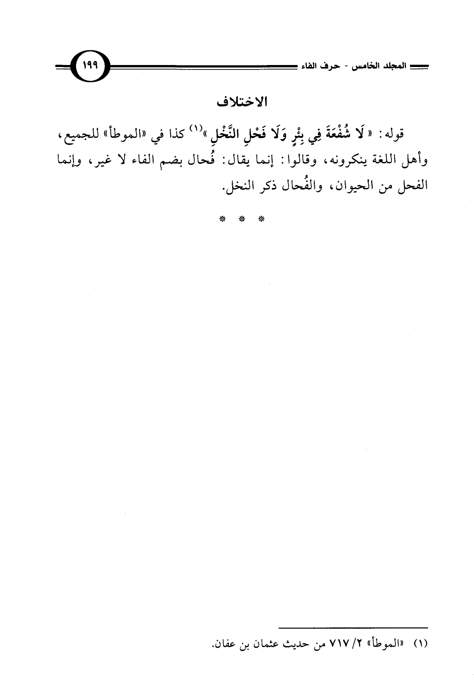 قوله:"لَا شُفْعَةَ فِي بِئْرٍ وَلَا فَحْلِ النَّخْلِ" (¬1) كذا في "الموطأ" للجميع، وأهل اللغة ينكرونه، وقالوا: إنما يقال: فُحال بضم الفاء لا غير، وإنما الفحل من الحيوان، والفُحال ذكر النخل.