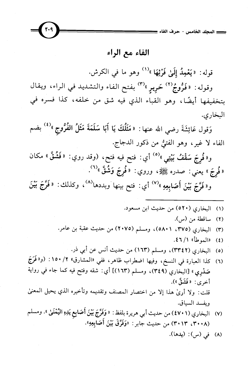 (¬6) كذا العبارة في النسخ، وفيها اضطراب ظاهر، ففي "المشارق" 2/ 150: (و"فَرَجَ صَدرِي" [البخاري (349)، ومسلم (163)] أي: شقه وفتح فيه كما جاء في رواية أخرى: "فَشَقَّ"). قلت: ولا أري هذا إلا من اختصار المصنف وتقديمه وتأخيره الذي يحيل المعني ويفسد السياق.