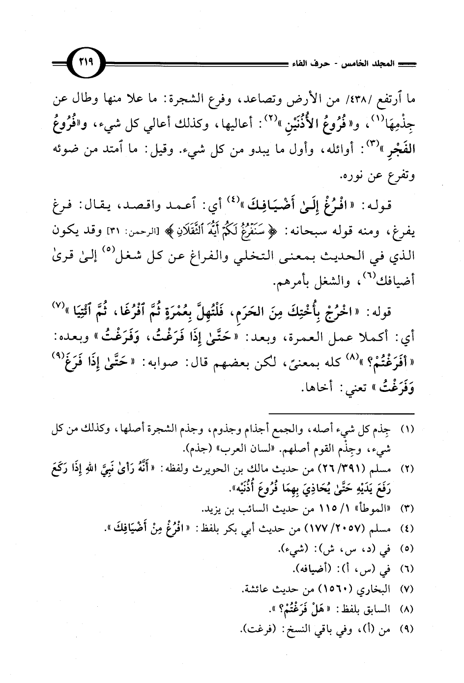 قوله: "افْرُغْ إلى أَضْيَافِكَ" (¬4) أي: اعمد واقصد، يقال: فرغ يفرغ، ومنه قوله سبحانه: {سَنَفْرُغُ لَكُمْ أَيُّهَ الثَّقَلَانِ (31)} [الرحمن: 31] وقد يكونْ الذي في الحديث بمعنى التخلي والفراغ عن كل شغل (¬5) إلى قرى أضيافك (¬6)، والشغل بأمرهم.