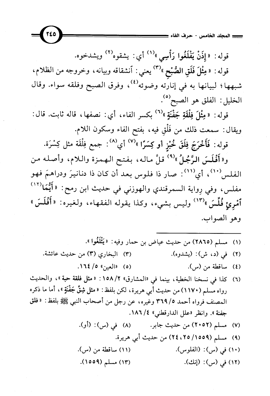 (¬6) كذا في نسخنا الخطية، بينما في "المشارق" 2/ 158: "مثل فلقة حبَّة"، والحديث رواه مسلم (1170) من حديث أبي هريرة، لكن بلفظ: "مثل شِقِّ جَفْنَةٍ"، أما ما ذكره المصنف فرواه أحمد 5/ 369 وغيره، عن رجل من أصحاب النبي - صلى الله عليه وسلم - بلفظ: "فلق جفنة". وانظر "علل الدارقطني" 4/ 186.