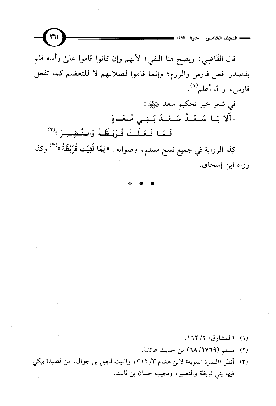 كذا الرواية في جميع نسخ مسلم، وصوابه: "لِمَا لَقِيَتْ قُرَيْظَةُ" (¬3) وكذا رواه ابن إسحاق.