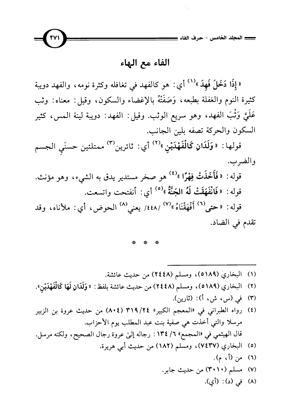 " إِذَا دَخَلَ فَهِدَ" (¬1) أي: هو كالفهد في تغافله وكثرة نومه، والفهد دويبة كثيرة النوم والغفلة بطبعه، وَصَفَتْهُ بالإغضاء والسكون، وقيل: معناه: وثب عَلَيَّ وَثْبَ الفهد، وهو سريع الوثب. وقيل: الفهد: دويبة لينة المس، كثير السكون والحركة تصفه بلين الجانب.