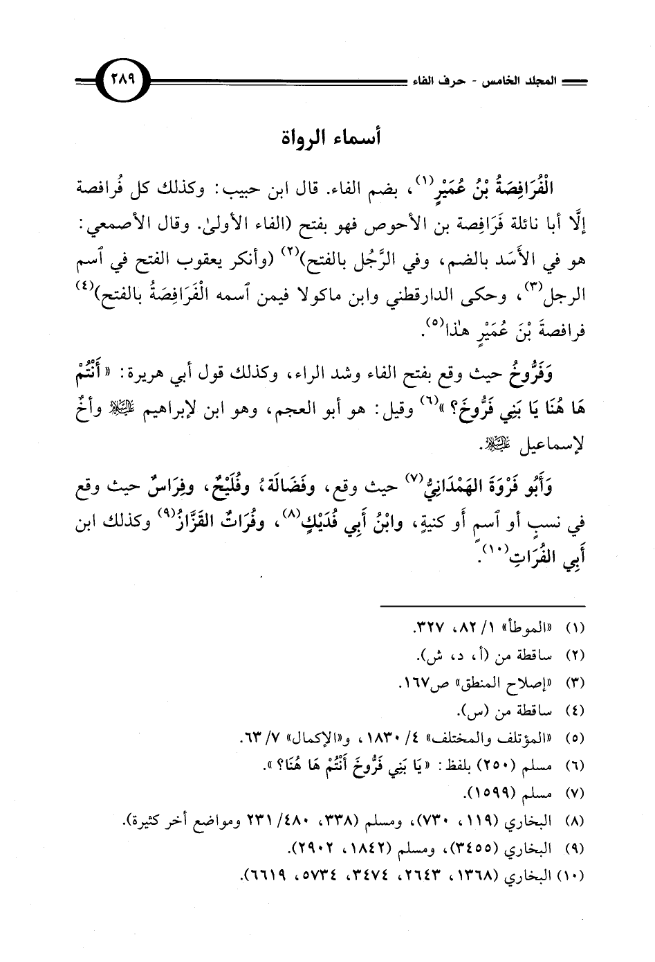 وَأَبُو فَرْوَةَ الهَمْدَانِيُّ (¬7) حيث وقع، وفَضَالَةُ، وفُلَيْحٌ، وفِرَاسٌ حيث وقع في نسبٍ أو اسمٍ أَو كنيةٍ، وابْنُ أَبِي فُدَيْكٍ (¬8)، وفُرَاتٌ القَزَّازُ (¬9) وكذلك ابن أَبِي الفُرَاتِ (¬10).