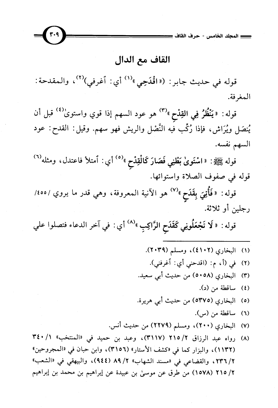 قوله: "يَنْظُرُ فِي القِدْحِ" (¬3) هو عود السهم إذا قوي واستوى (¬4) قبل أن يُنصَل ويُرَاش، فإذا رُكِّب فيه النَّصْل والريش فهو سهم. وقيل: القدح: عود السهم نفسه.
