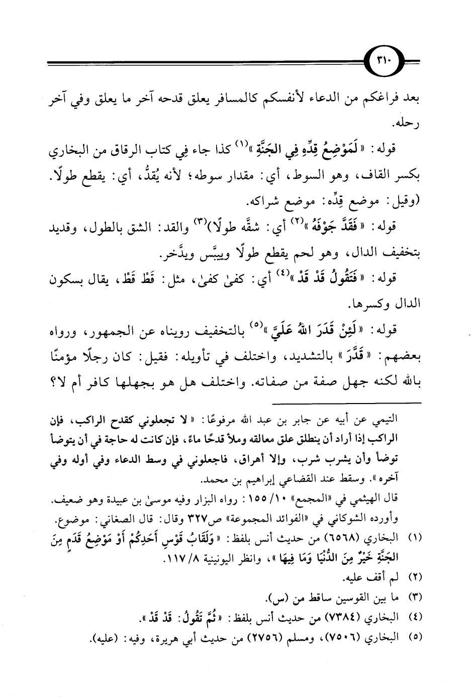 (¬1) البخاري (6568) من حديث أنس بلفظ: "وَلَقَابُ قَوْسِ أَحَدِكمْ أَوْ مَوْضِعُ قَدَمٍ مِنَ الجَنَّةِ خَيْرٌ مِنَ الدُّنْيَا وَمَا فِيهَا"، وانظر اليونينية 8/ 117.