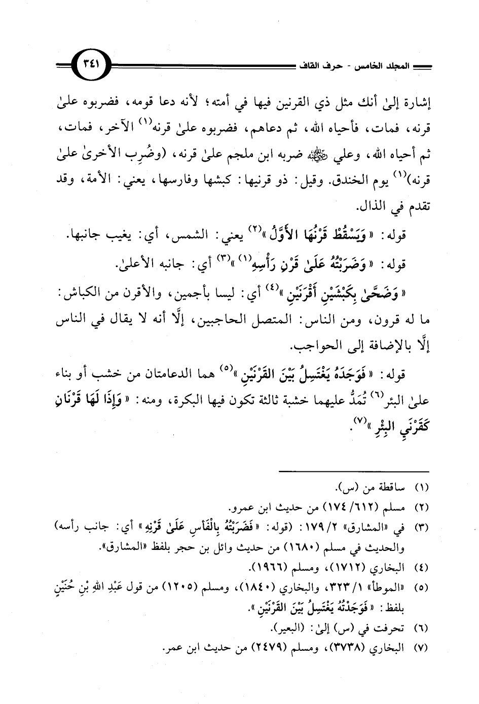 (¬3) في "المشارق" 2/ 179: (قوله: "فَضَرَبْتُهُ بِالْفَأسِ عَلَى قَرْنِهِ" أي: جانب رأسه) والحديث في مسلم (1680) من حديث وائل بن حجر بلفظ "المشارق".