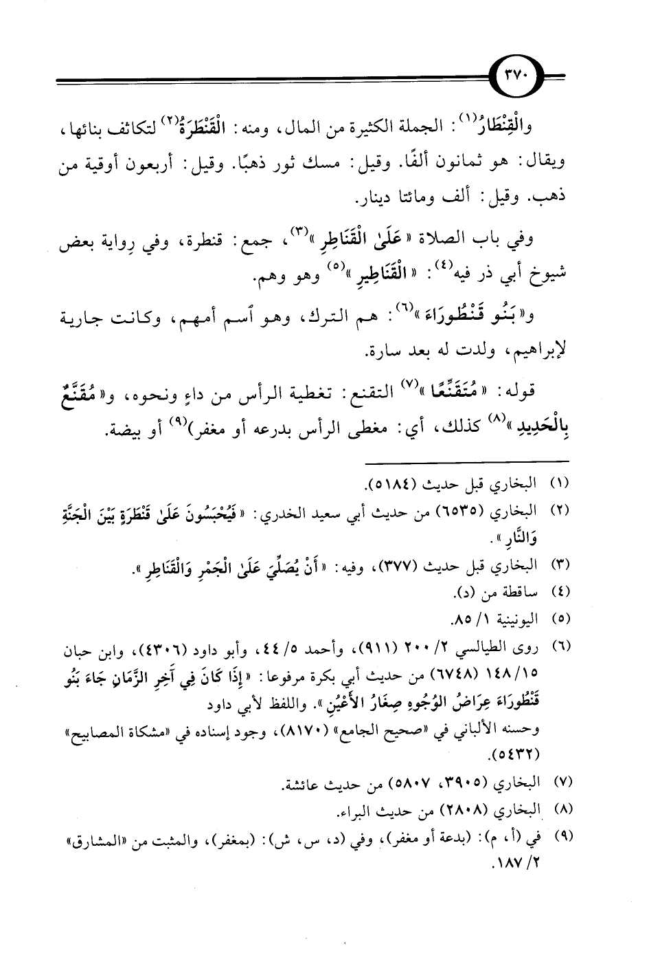 وفي باب الصلاة "عَلَي الْقَنَاطِرِ" (¬3)، جمع: قنطرة، وفي رِواية بعض شيوخ أبي ذر فيه (¬4): "الْقَنَاطِيرِ" (¬5) وهو وهم.