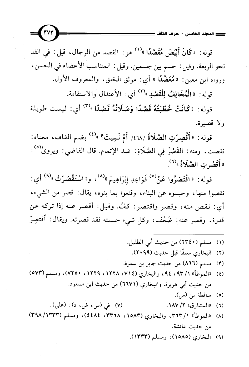 قوله: "أَقُصِرَتِ الصَّلَاةُ أَمْ نَسِيتَ؟ " (¬4) بضم القاف، معناه: نقصت، ومنه: القَصْرُ في الصَّلَاةِ: ضد الإتمام. قال القاضي: ويروي (¬5): "أَقَصُرتِ الصَّلَاةُ" (¬6).