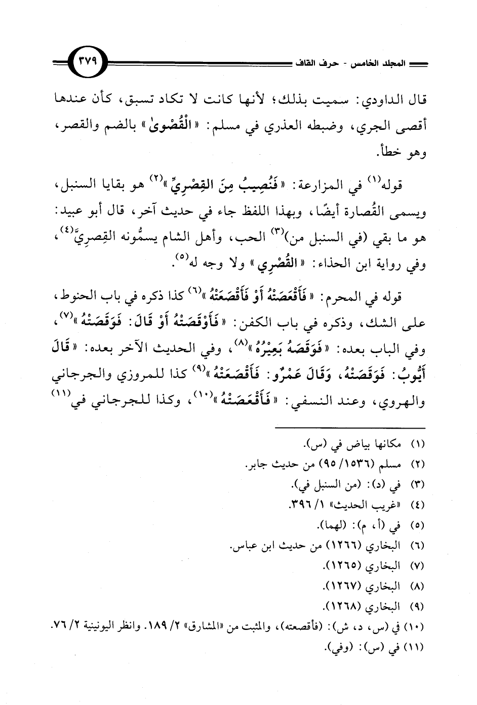 (¬10) في (س، د، ش): (فأقصعته)، والمثبت من "المشارق" 2/ 189. وانظر اليونينية 2/ 76.