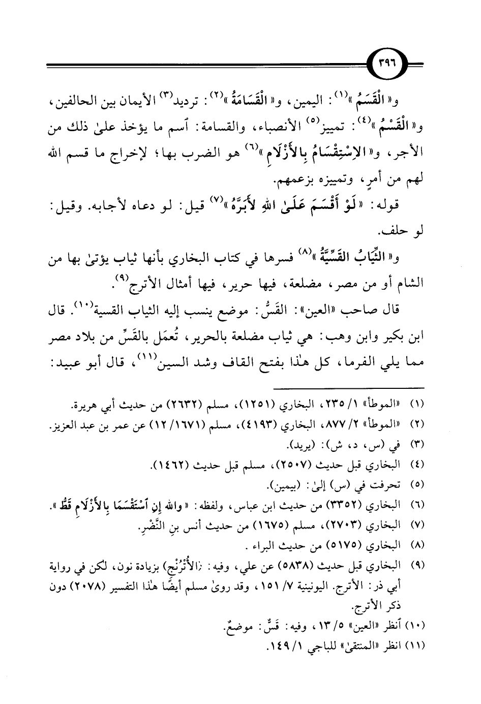 قال صاحب "العين": القَسُّ: موضع ينسب إليه الثياب القسية (¬10). قال ابن بكير وابن وهب: هي ثياب مضلعة بالحرير، تُعمَل بالقَسِّ من بلاد مصر مما يلي الفرما، كل هذا بفتح القاف وشد السين (¬11)، قال أبو عبيد:
