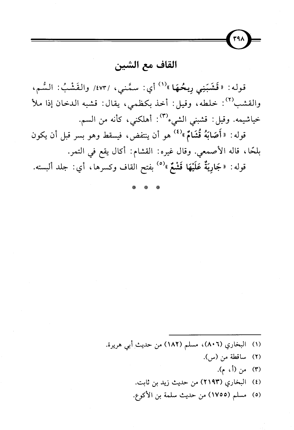 قوله: "قَشَبَنِي رِيحُهَا" (¬1) أي: سمَّني، والقَشْبُ: السُّم، والقشب (¬2): خلطه، وقيل: أخذ بكظمي، يقال: قشبه الدخان إذا ملأ خياشيمه. وقيل: قشبني الشيء (¬3): أهلكني، كأنه من السم.