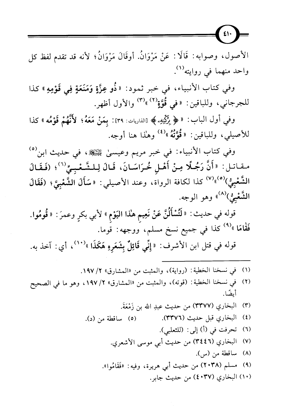 وفي كتاب الأنبياء، في خبر ثمود: "ذُو عِزَّةٍ وَمَنَعَةٍ في قَوْمِهِ" كذا للجرجاني، وللباقين: "في قوَّةٍ (¬2) " (¬3) والأول أظهر.