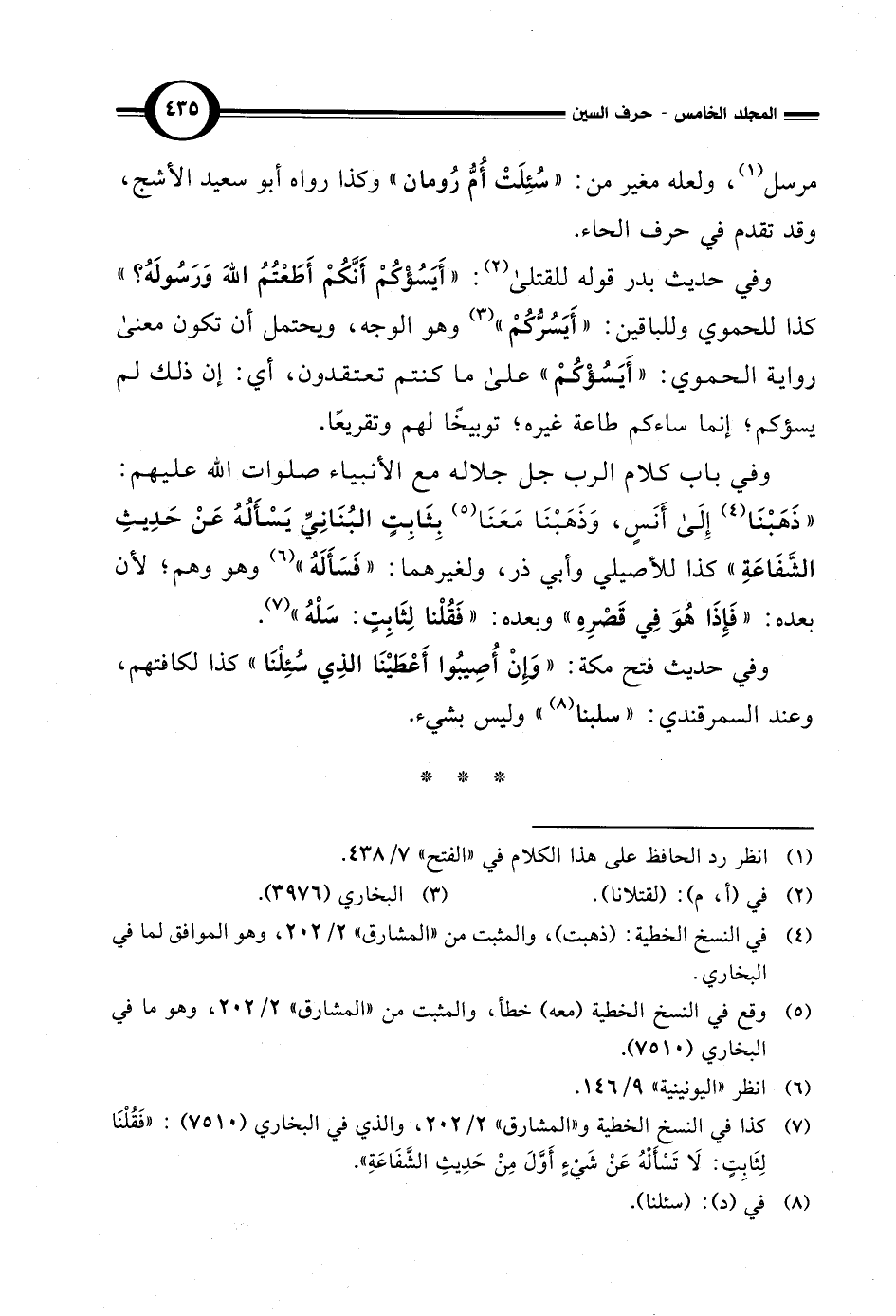 (¬1) انظر رد الحافظ على هذا الكلام في "الفتح" 7/ 438.