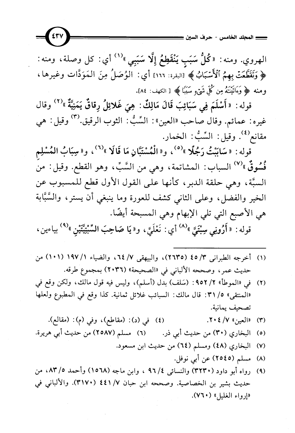 الهروي. ومنه: "كُلُّ سَبَب يَنْقَطِعُ إِلَّا سَبَبِي" (¬1) أي: كل وصلة، ومنه: {وَتَقَطَّعَتْ بِهِمُ الْأَسْبَابُ} [البقرة: 166] أي: الوُصَلُ مِنَ المَوَدَّات وغيرها، ومنه {وَآتَيْنَاهُ مِنْ كُلِّ شَيْءٍ سَبَبًا} [الكهف: 84].