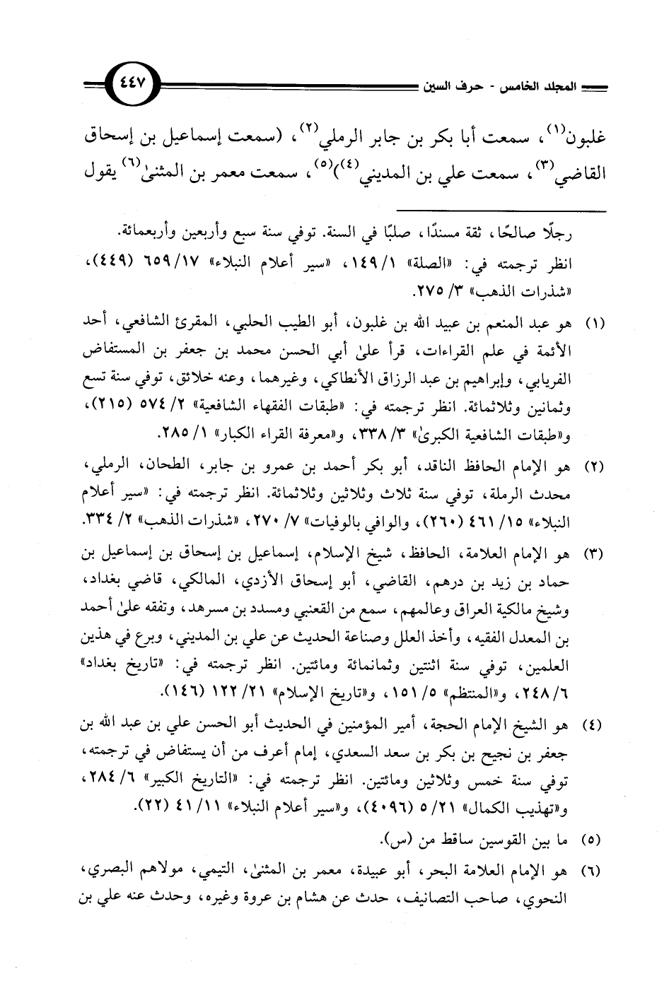 غلبون (¬1)، سمعت أبا بكر بن جابر الرملي (¬2)، (سمعت إسماعيل بن إسحاق القاضي (¬3)، سمعت علي بن المديني (¬4)) (¬5)، سمعت معمر بن المثنى (¬6) يقول