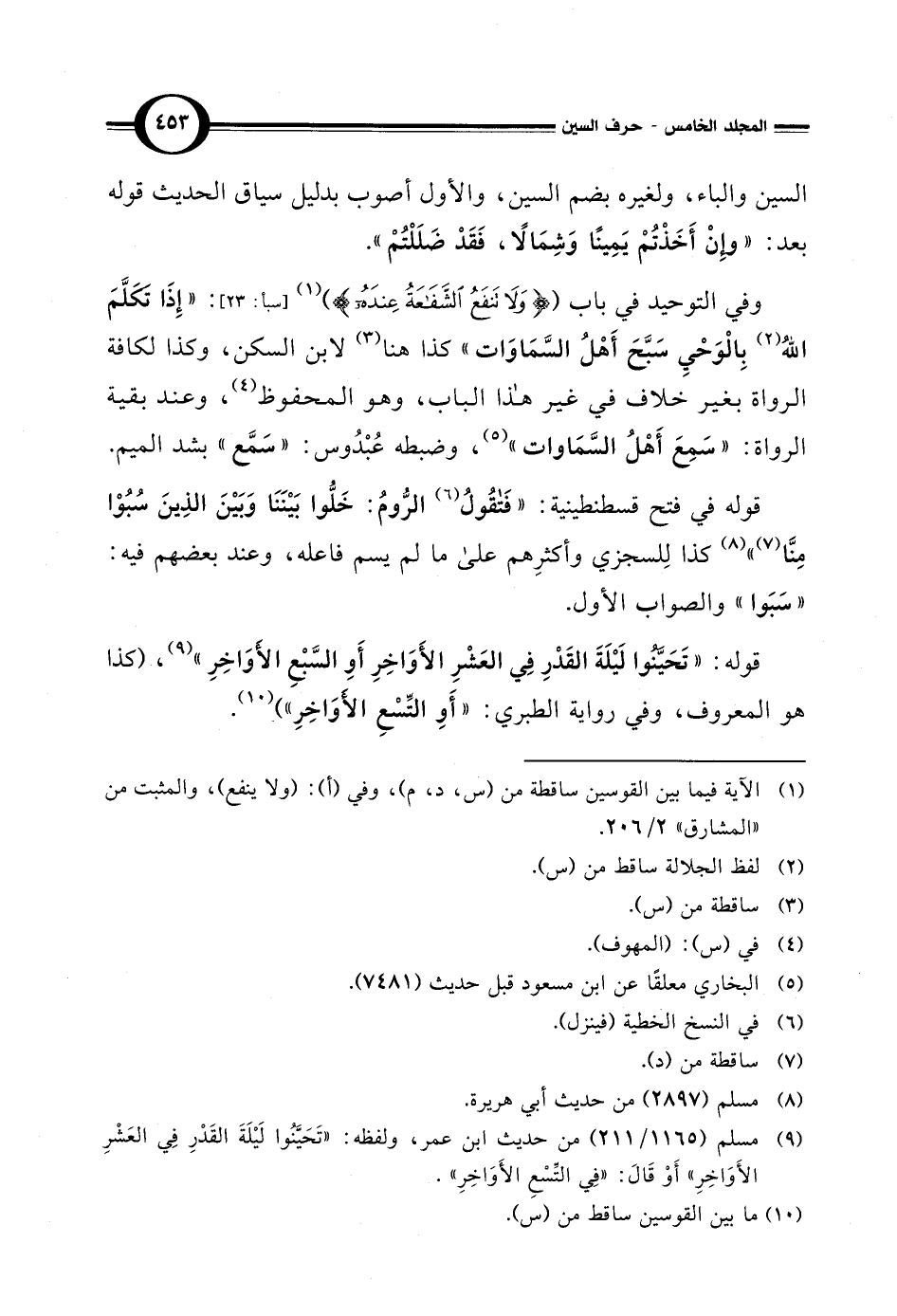 قوله في فتح قسطنطينية: "فَتقُولُ (¬6) الرُّومُ: خَلُّوا بَيْنَنَا وَبَيْنَ الذِينَ سُبُوْا مِنَّا (¬7) " (¬8) كذا لِلسجزي وأكثرِهم على ما لم يسم فاعله، وعند بعضهم فيه: "سَبَوا" والصواب الأول.
