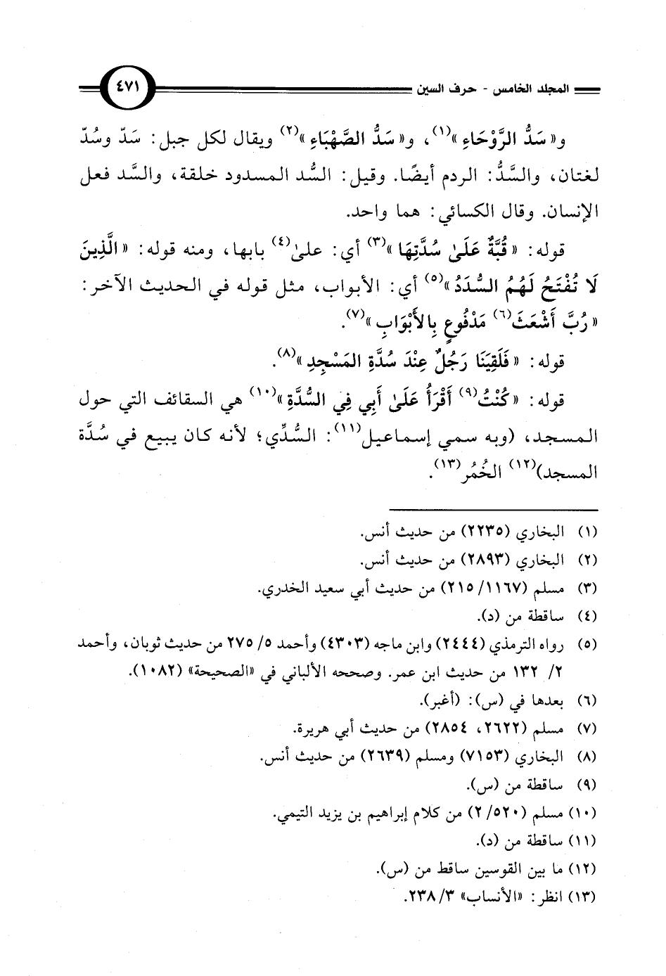 قوله: "كنْتُ (¬9) أَقْرَأُ عَلَى أَبِي في السُّدَّةِ" (¬10) هي السقائف التي حول المسجد، (وبه سمي إسماعيل (¬11): السُّدِّي؛ لأنه كان يبيع في سُدَّة المسجد) (¬12) الخُمُر (¬13).
