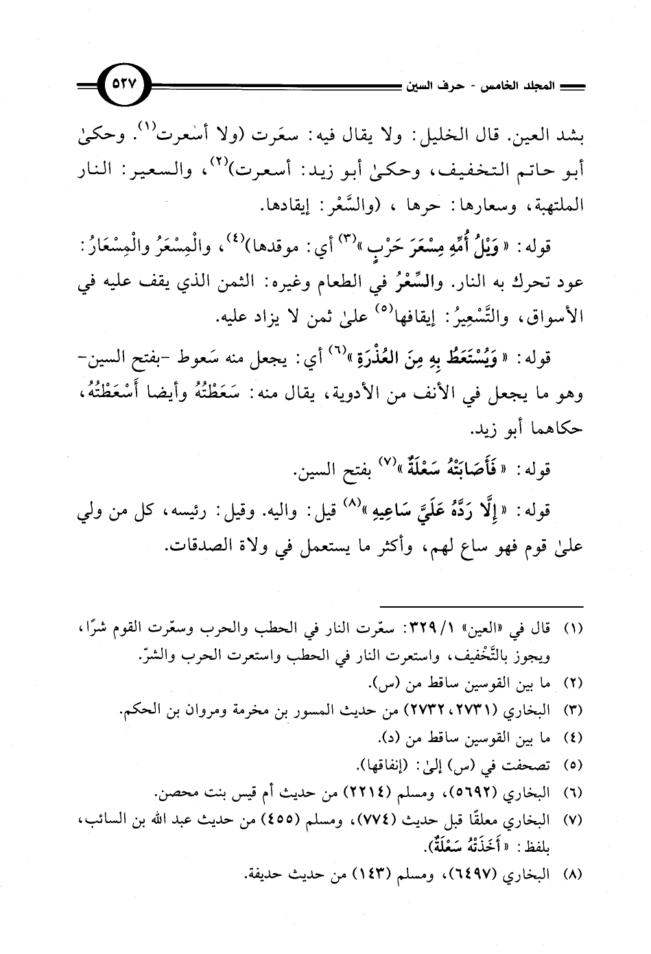 قوله: "وَيْلُ أُمِّهِ مِسْعَرَ حَرْبٍ" (¬3) أي: موقدها) (¬4)، والْمِسْعَرُ والْمِسْعَارُ: عود تحرك به النار. والسِّعْرُ في الطعام وغيره: الثمن الذي يقف عليه في الأسواق، والتَّسْعِيرُ: إيقافها (¬5) على ثمن لا يزاد عليه.