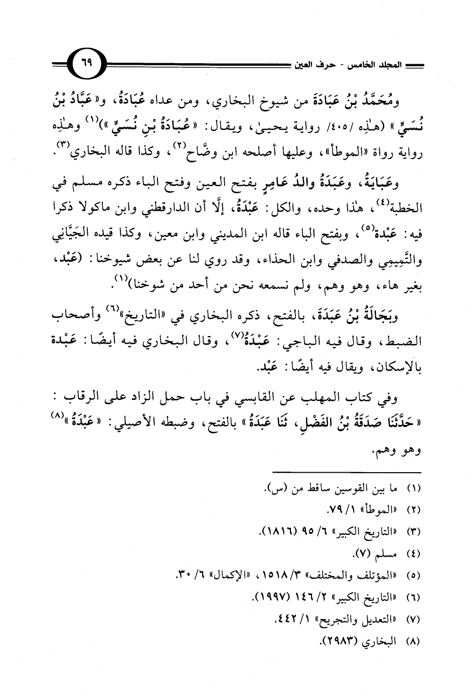 ومُحَمَّدُ بْنُ عَبَادَةَ من شيوخ البخاري، ومن عداه عُبَادَةُ، و"عَبَّادُ بْنُ نُسَيٍّ" (هذِه رواية يحيى، ويقال: "عُبَادَةُ بْنِ نُسَيٍّ") (¬1) وهذه رواية رواة "الموطأ"، وعليها أصلحه ابن وضَّاح (¬2)، وكذا قاله البخاري (¬3).