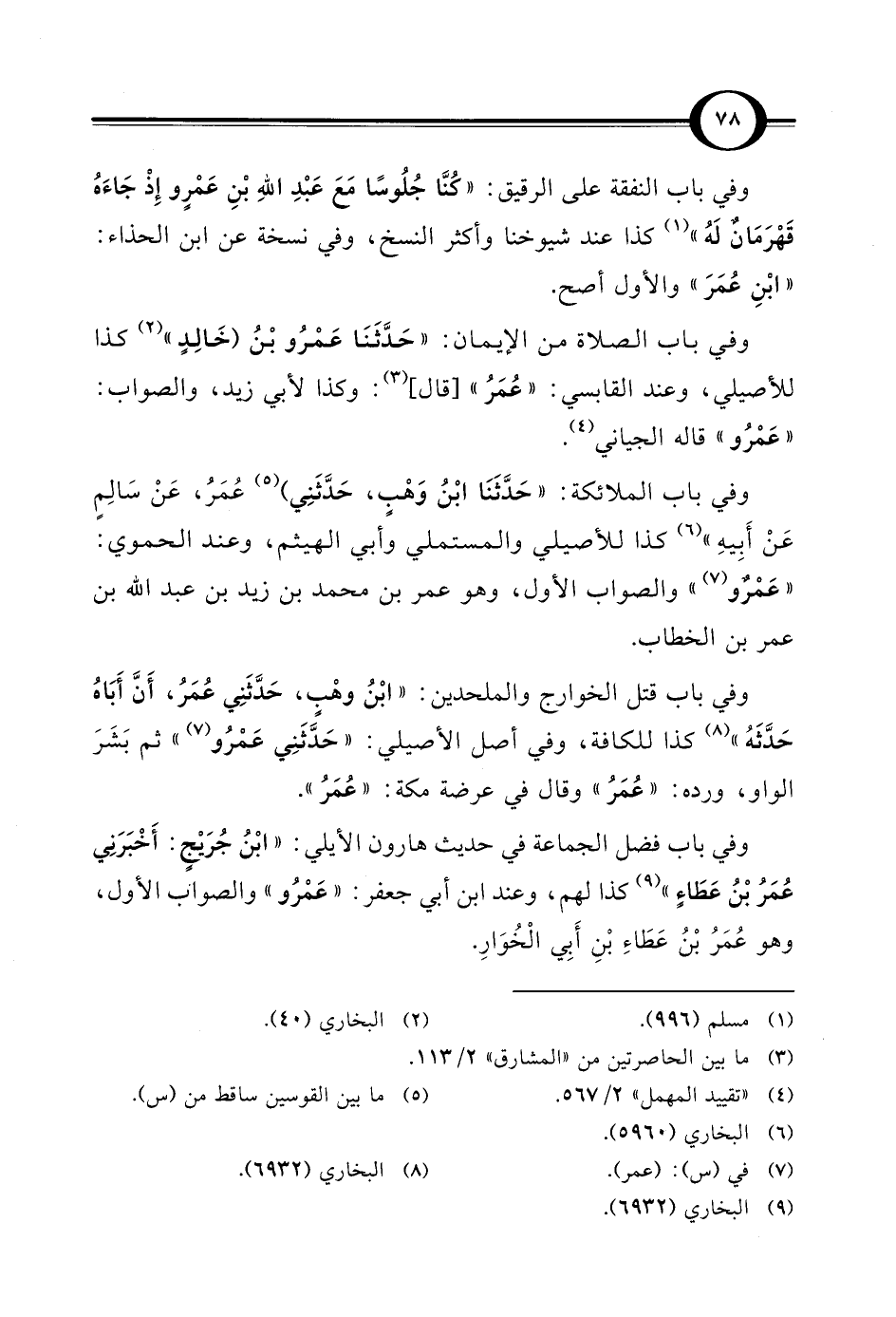 وفي باب قتل الخوارج والملحدين: "ابْنُ وهْبٍ، حَدَّثَنِي عُمَرُ، أَنَّ أَبَاهُ حَدَّثَهُ" (¬8) كذا للكافة، وفي أصل الأصيلي: "حَدَّثَنِي عَمْرُو (7) " ثم بَشَرَ الواو، ورده: "عُمَرُ" وقال في عرضة مكة: "عُمَرُ".