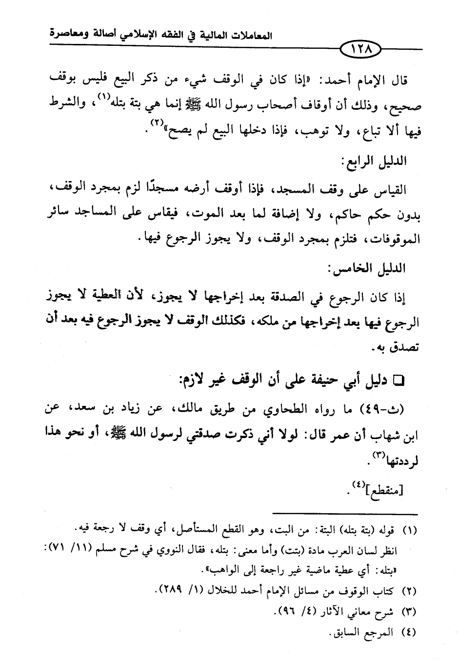 دليل أبي حنيفة على أن الوقف غير لازم: