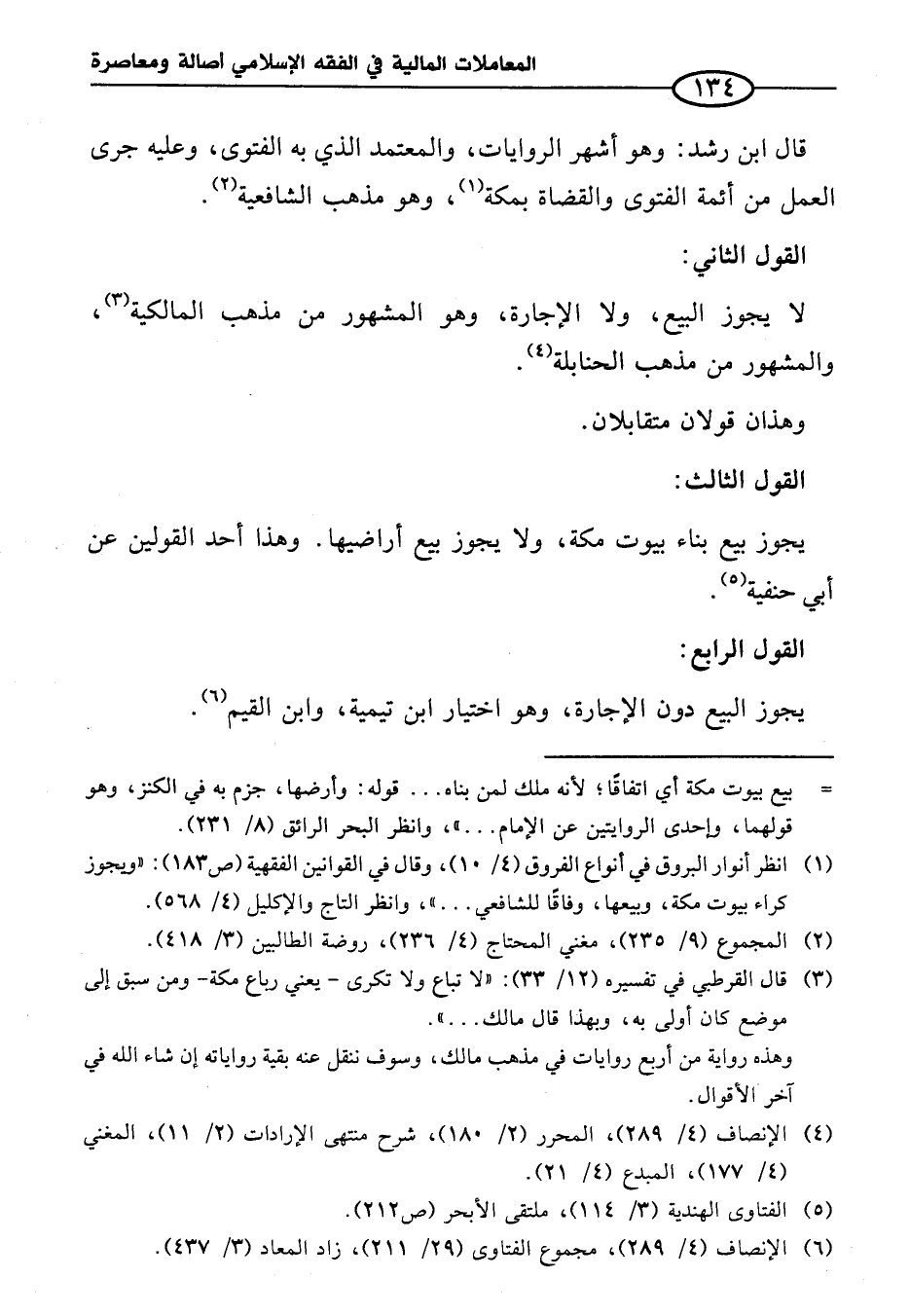 (¬١) انظر أنوار البروق في أنواع الفروق (٤/ ١٠)، وقال في القوانين الفقهية (ص ١٨٣): "ويجوز كراء بيوت مكة، وبيعها، وفاقًا للشافعي ... "، وانظر التاج والإكليل (٤/ ٥٦٨).