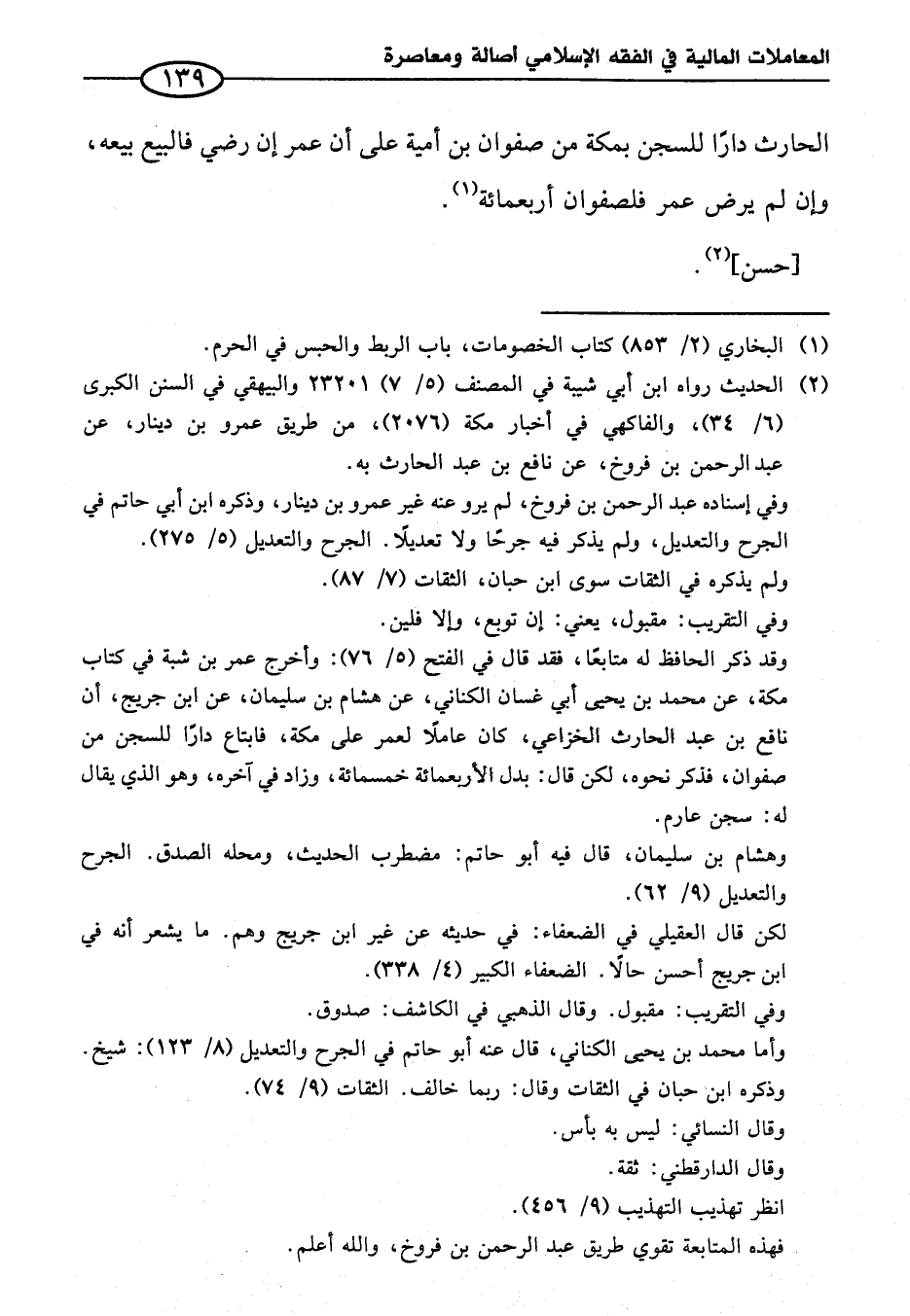 (¬٢) الحديث رواه ابن أبي شيبة في المصنف (٥/ ٧) ٢٣٢٠١ والبيهقي في السنن الكبرى (٦/ ٣٤)، والفاكهي في أخبار مكة (٢٠٧٦)، من طريق عمرو بن دينار، عن عبد الرحمن بن فروخ، عن نافع بن عبد الحارث به.