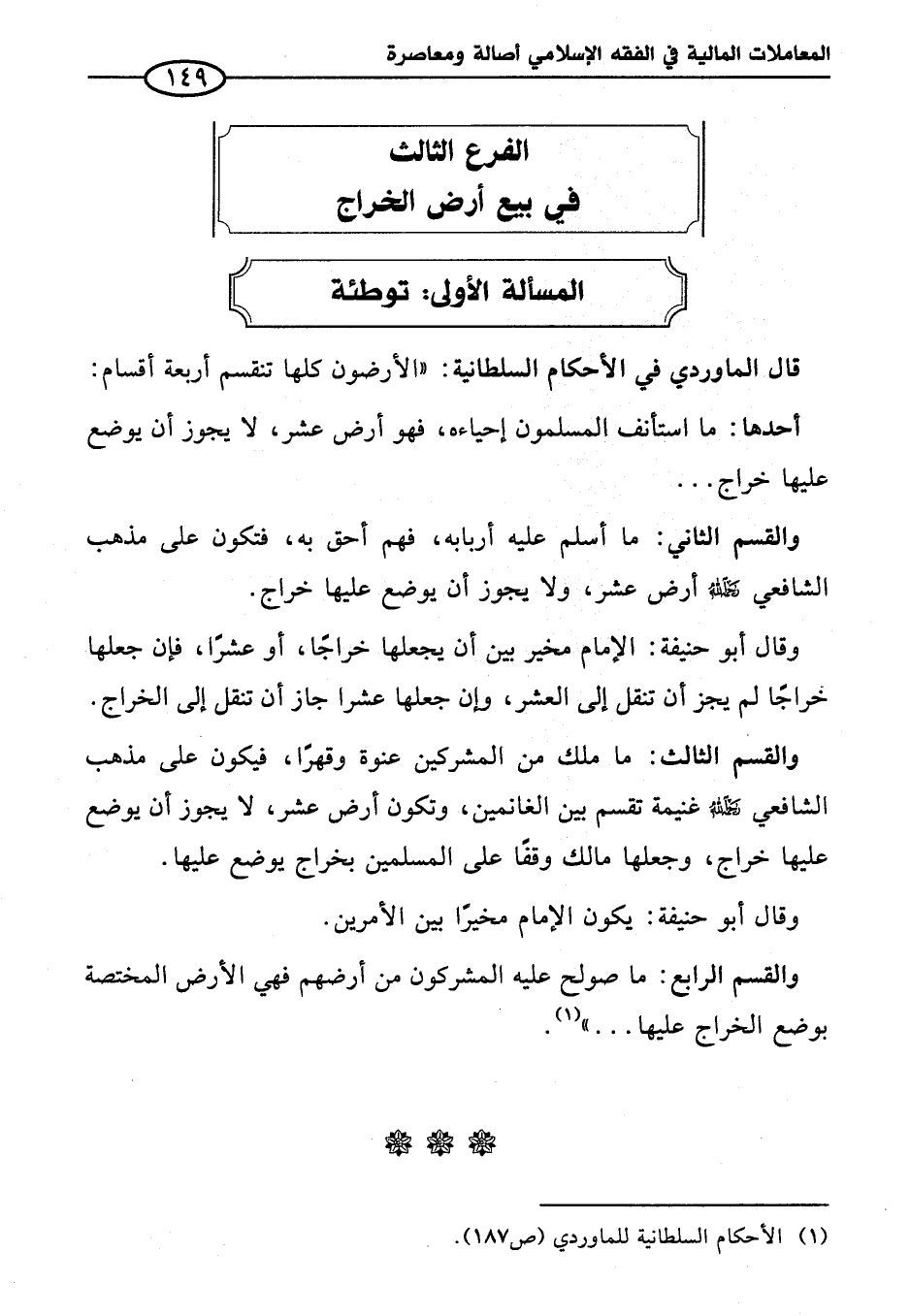 (¬١) الأحكام السلطانية للماوردي (ص ١٨٧).