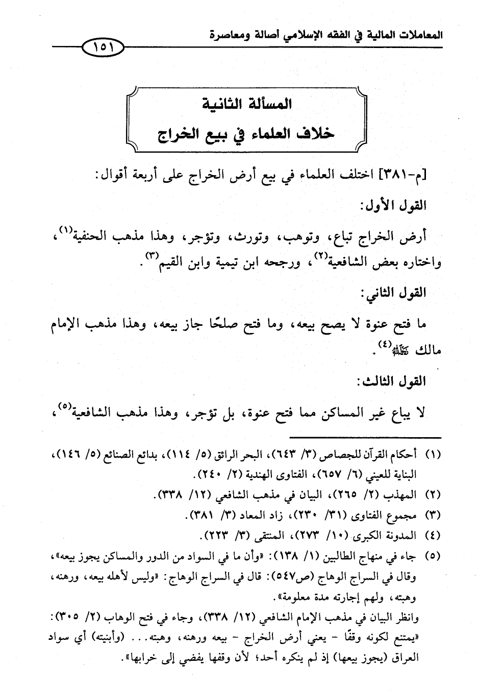 المسألة الثانية خلاف العلماء في بيع الخراج