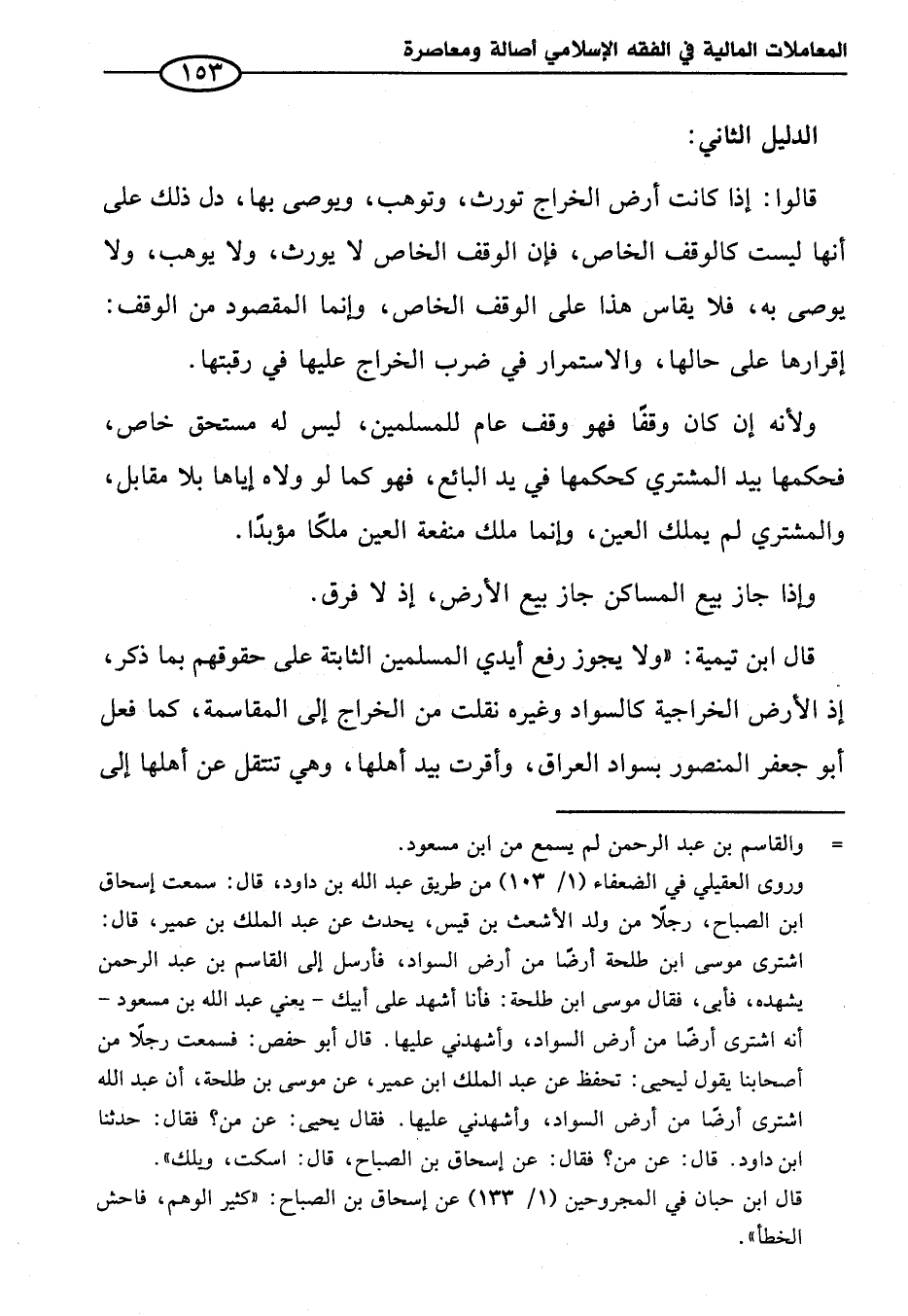 قالوا: إذا كانت أرض الخراج تورث، وتوهب، ويوصى بها، دل ذلك على أنها ليست كالوقف الخاص، فإن الوقف الخاص لا يورث، ولا يوهب، ولا يوصى به، فلا يقاس هذا على الوقف الخاص، وإنما المقصود من الوقف: إقرارها على حالها، والاستمرار في ضرب الخراج عليها في رقبتها.