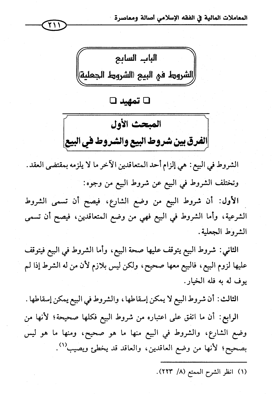 الباب السابع الشروط في البيع (الشروط الجعلية)