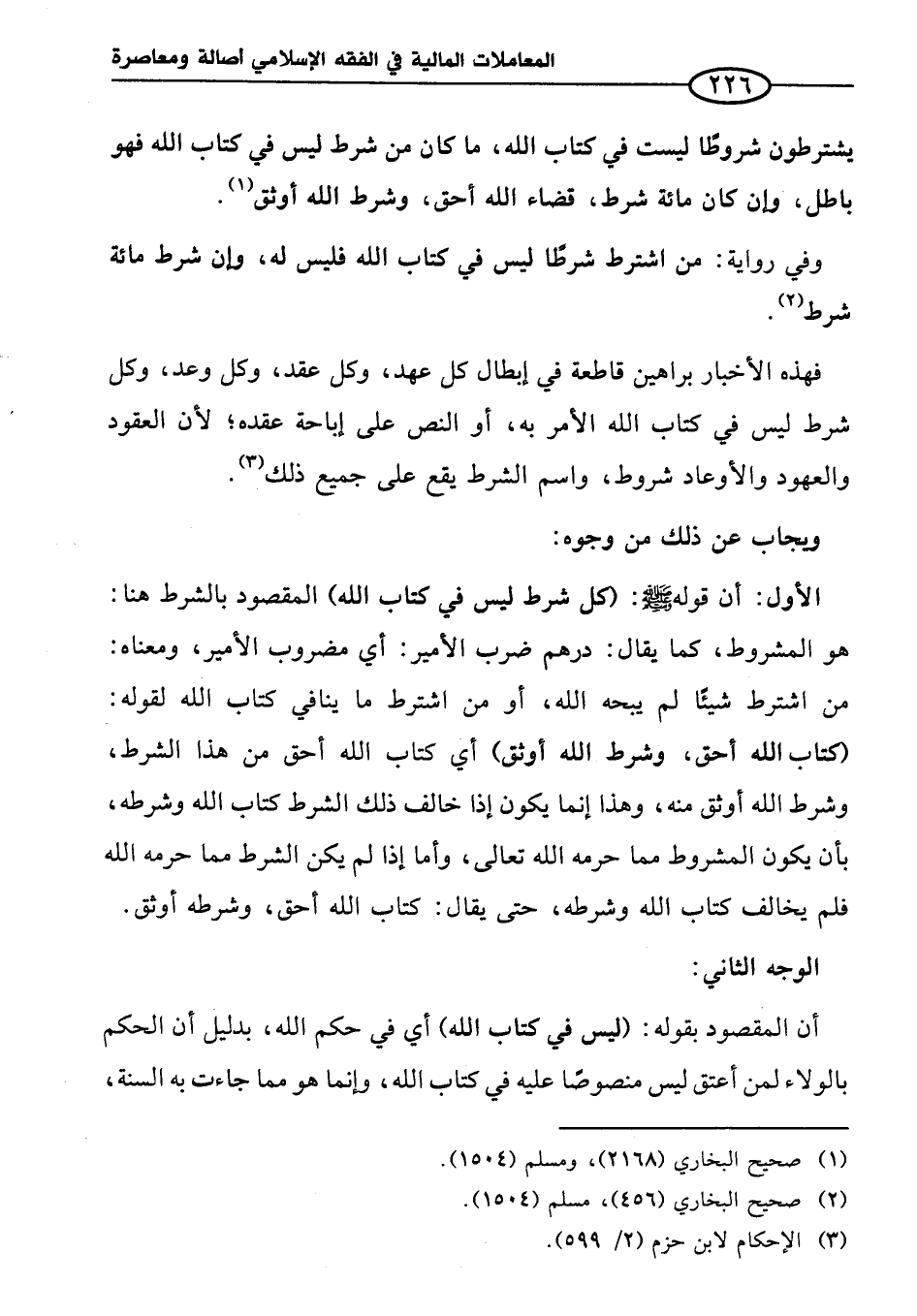 فهذه الأخبار براهين قاطعة في إبطال كل عهد، وكل عقد، وكل وعد، وكل شرط ليس في كتاب الله الأمر به، أو النص على إباحة عقده؛ لأن العقود والعهود والأوعاد شروط، واسم الشرط يقع على جميع ذلك (¬٣).