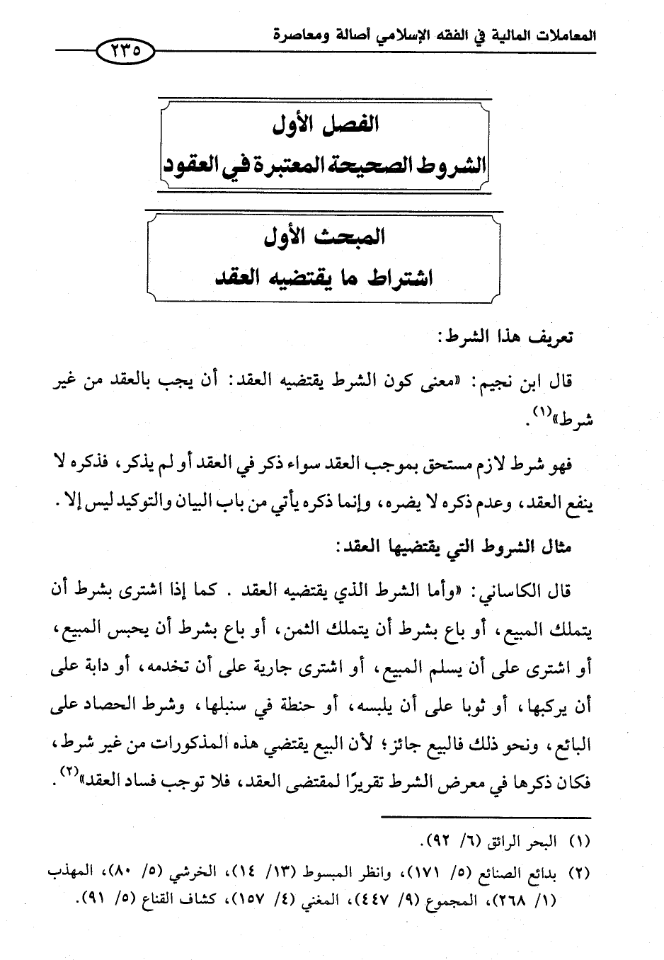 الفصل الأول الشروط الصحيحة المعتبرة في العقود