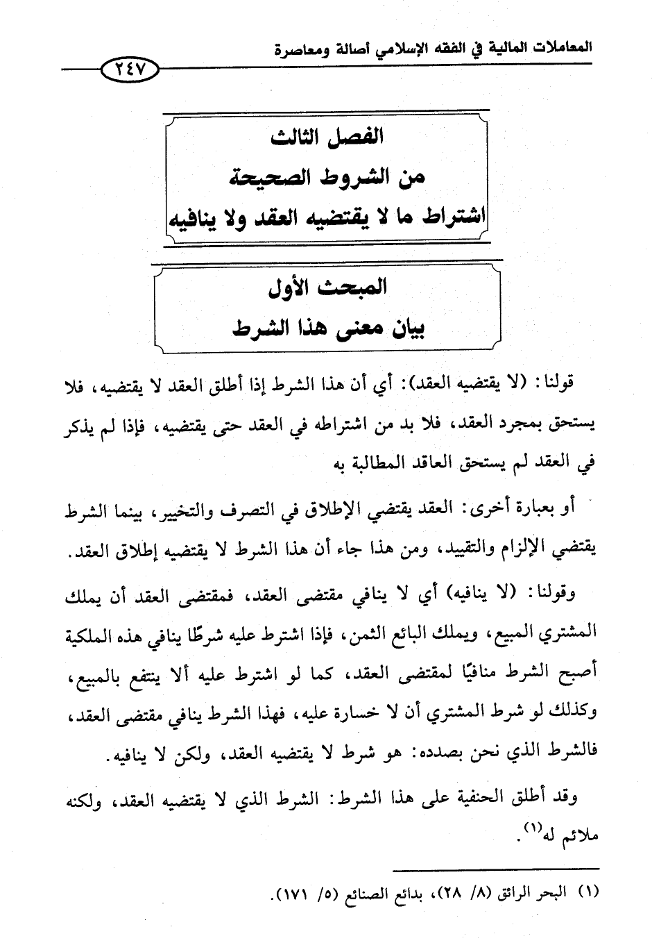 الفصل الثالث من الشروط الصحيحة اشتراط ما لا يقتضيه العقد ولا ينافيه