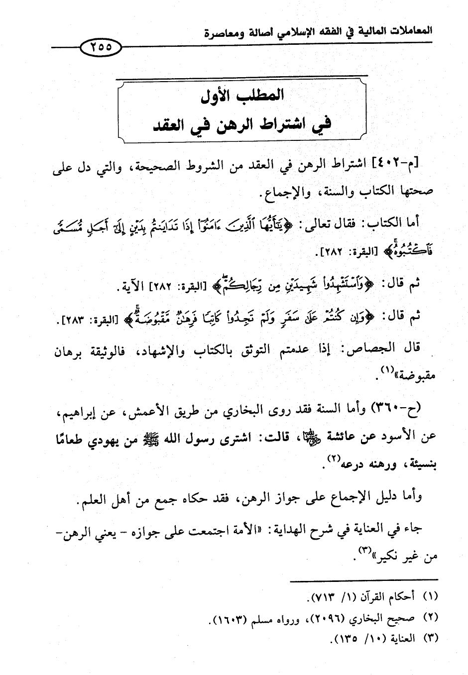 [م - ٤٠٢] اشتراط الرهن في العقد من الشروط الصحيحة، والتي دل على صحتها الكتاب والسنة، والإجماع.