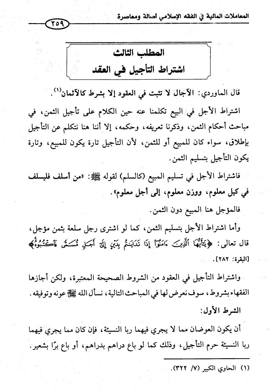 واشتراط التأجيل في العقود من الشروط الصحيحة المعتبرة، ولكن أجازها الفقهاء بشروط، سوف نعرض لها في المباحث التالية، نسأل الله - سبحانه وتعالى - عونه وتوفيقه.