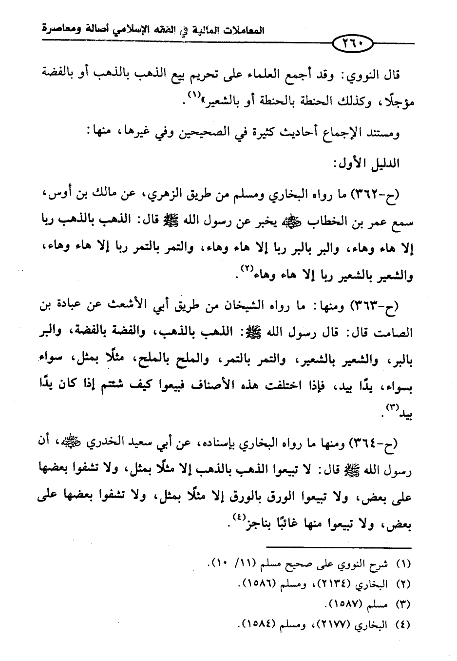 (ح-٣٦٢) ما رواه البخاري ومسلم من طريق الزهري، عن مالك بن أوس، سمع عمر بن الخطاب - رضي الله عنه - يخبر عن رسول الله - صلى الله عليه وسلم - قال: الذهب بالذهب ربا إلا هاء وهاء، والبر بالبر ربا إلا هاء وهاء، والتمر بالتمر ربا إلا هاء وهاء، والشعير بالشعير ربا إلا هاء وهاء (¬٢).