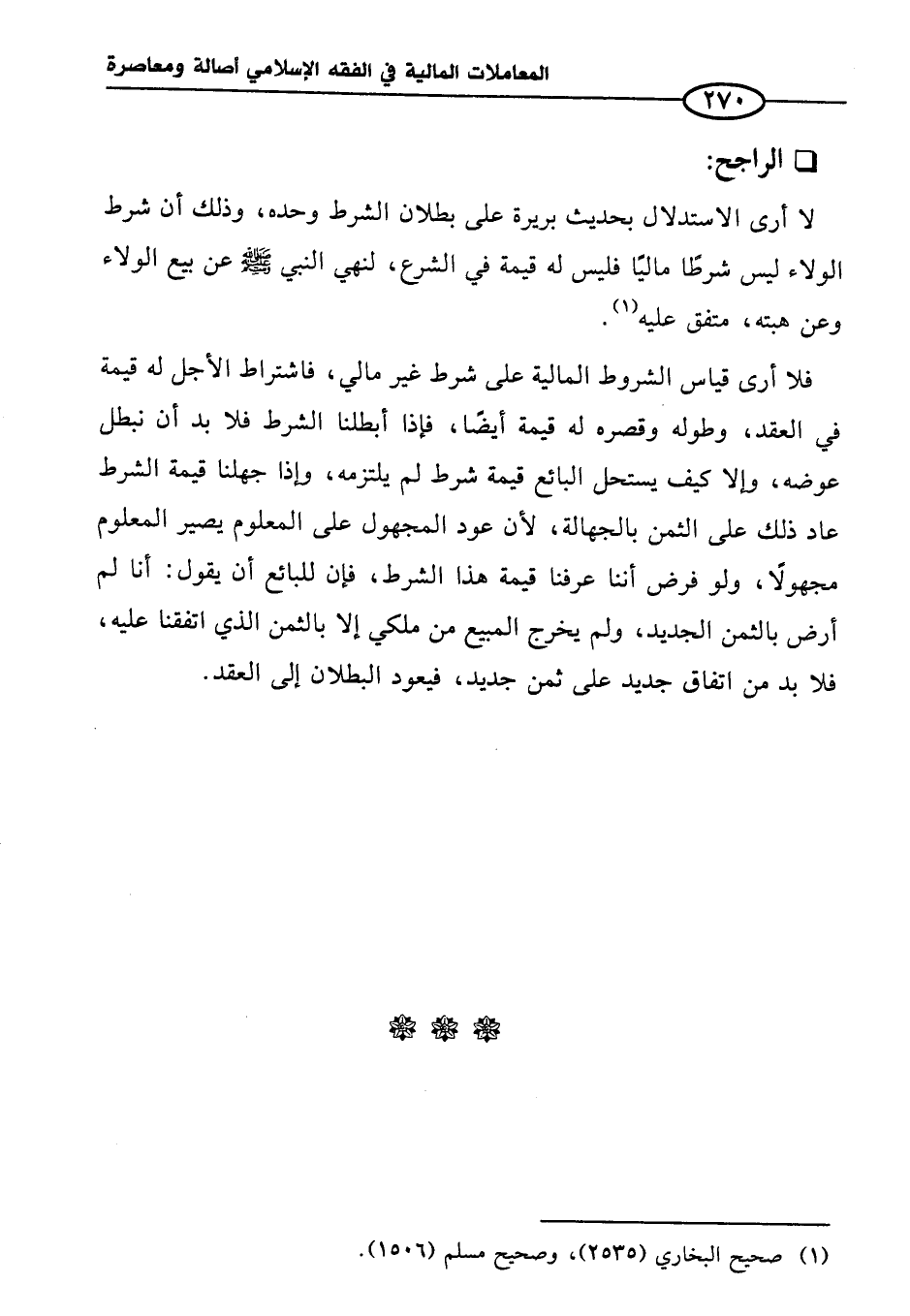 لا أرى الاستدلال بحديث بريرة على بطلان الشرط وحده، وذلك أن شرط الولاء ليس شرطًا ماليًا فليس له قيمة في الشرع، لنهي النبي - صلى الله عليه وسلم - عن بيع الولاء وعن هبته، متفق عليه (¬١).
