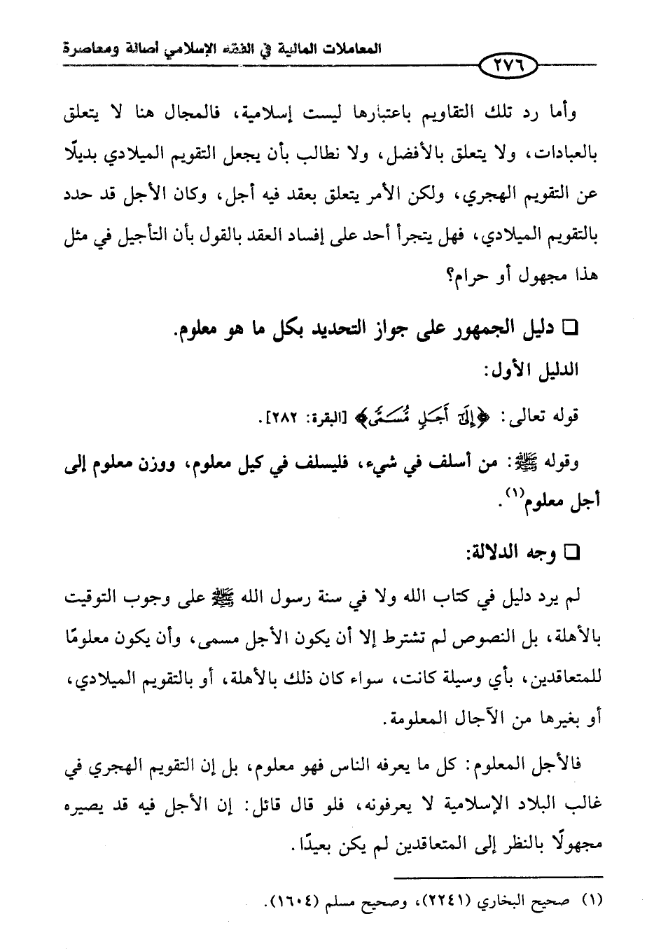فالأجل المعلوم: كل ما يعرفه الناس فهو معلوم، بل إن التقويم الهجري في غالب البلاد الإسلامية لا يعرفونه، فلو قال قائل: إن الأجل فيه قد يصيره مجهولًا بالنظر إلى المتعاقدين لم يكن بعيدًا.