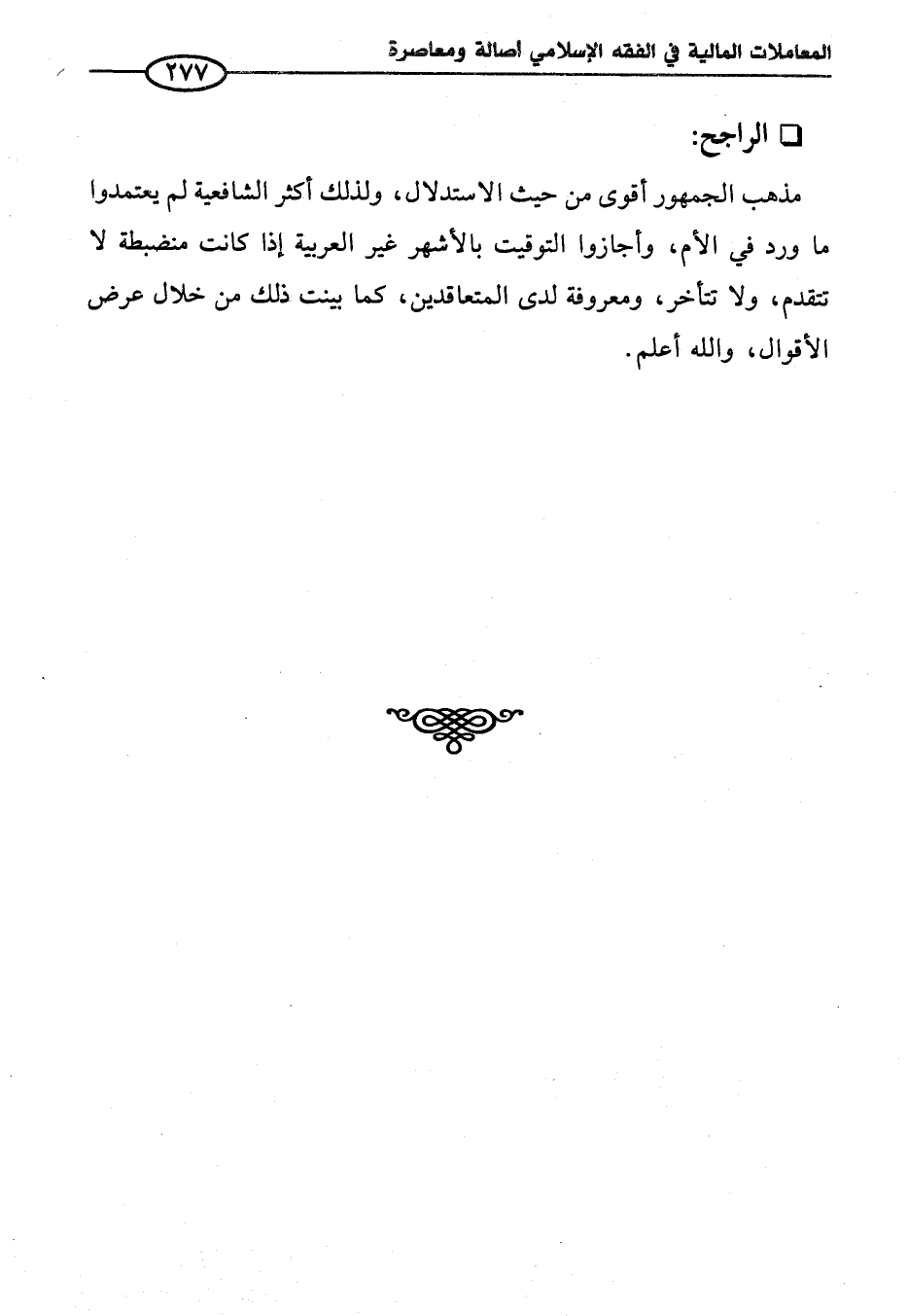 مذهب الجمهور أقوى من حيث الاستدلال، ولذلك أكثر الشافعية لم يعتمدوا ما ورد في الأم، وأجازوا التوقيت بالأشهر غير العربية إذا كانت منضبطة لا تتقدم، ولا تتأخر، ومعروفة لدى المتعاقدين، كما بينت ذلك من خلال عرض الأقوال، والله أعلم.