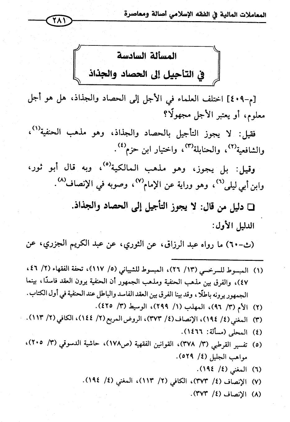 المسألة السادسة في التأجيل إلى الحصاد والجذاذ