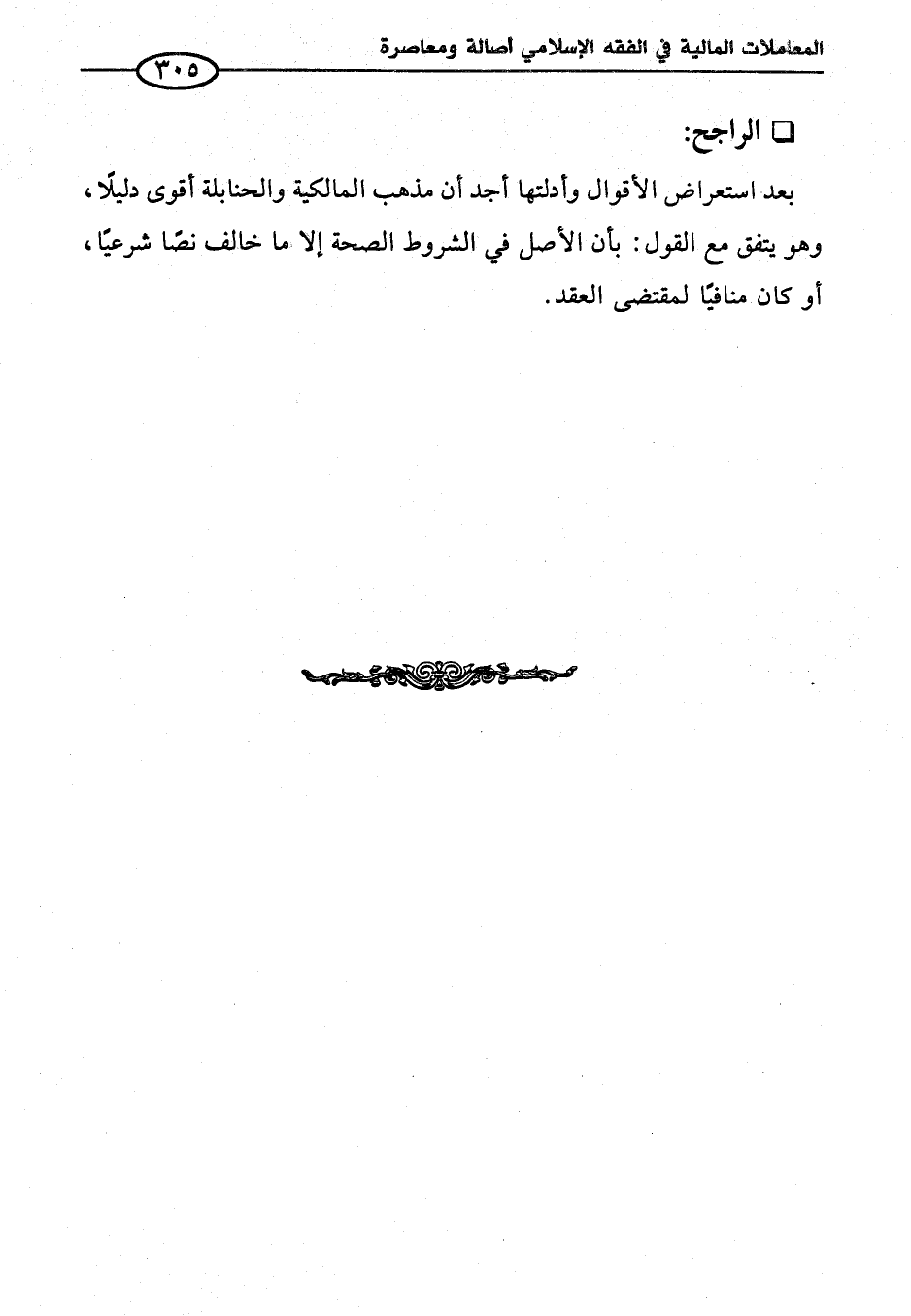 بعد استعراض الأقوال وأدلتها أجد أن مذهب المالكية والحنابلة أقوى دليلًا، وهو يتفق مع القول: بأن الأصل في الشروط الصحة إلا ما خالف نصًا شرعيًا، أو كان منافيًا لمقتضى العقد.