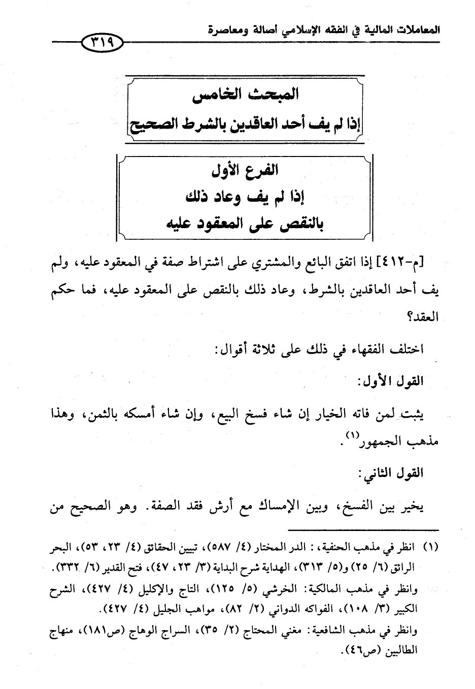 المبحث الخامس إذا لم يف أحد العاقدين بالشرط الصحيح