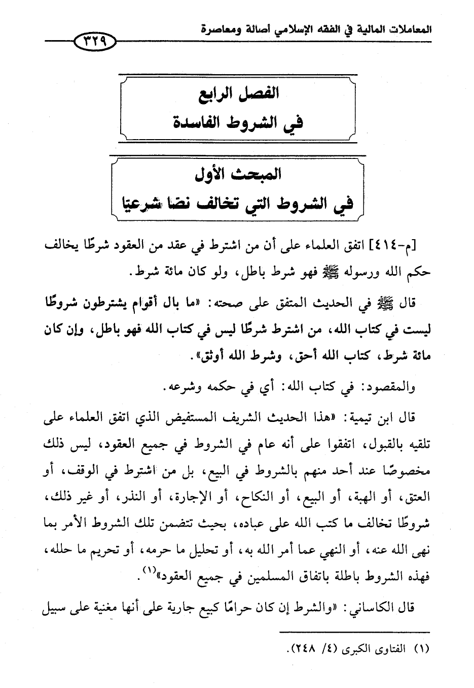 الفصل الرابع في الشروط الفاسدة