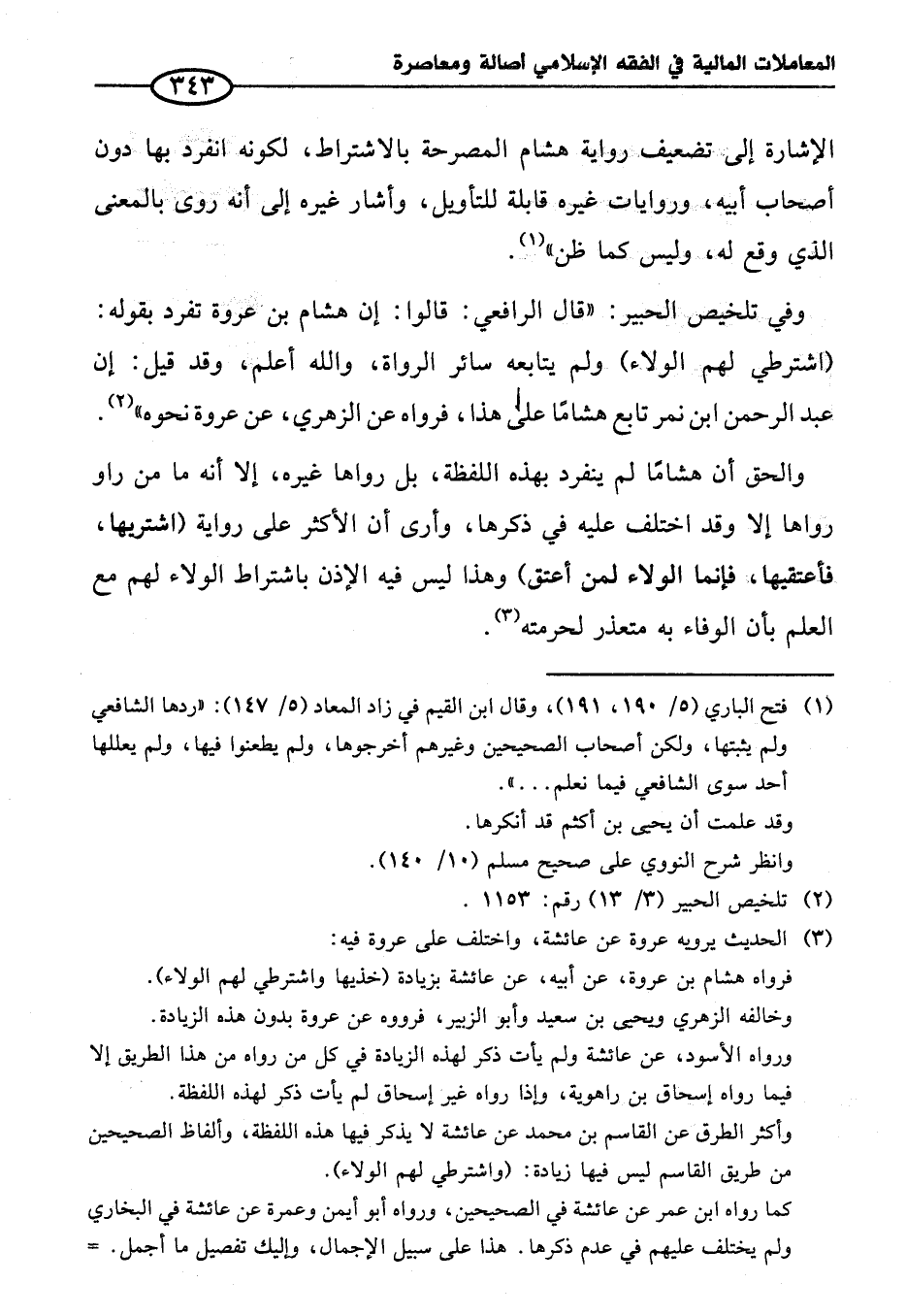 والحق أن هشامًا لم ينفرد بهذه اللفظة، بل رواها غيره، إلا أنه ما من راو رواها إلا وقد اختلف عليه في ذكرها، وأرى أن الأكثر على رواية (اشتريها، فأعتقيها، فإنما الولاء لمن أعتق) وهذا ليس فيه الإذن باشتراط الولاء لهم مع العلم بأن الوفاء به متعذر لحرمته (¬٣).