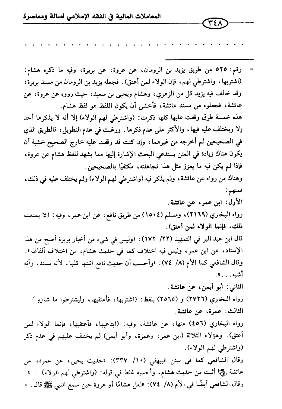 هذه خمسة طرق وقفت عليها كلها ذكرت: (واشترطي لهم الولاء) إلا أنه لا يذكرها أحد إلا ويختلف عليه فيها، والأكثر على عدم ذكرها. ورغبت في عدم التطويل، فالطريق الذي في الصحيحين لم أخرجه من غيرهما، وإن كنت قد وقفت عليه خارج الصحيح خشية أن يكون هناك زيادة في المتن يستدعي البحث الإشارة إليها مما يشهد للفظ هشام عن عروة، فإذا لم يكن فيه ما يعزز مثل هذا تجاهلته، مكتفيًا بالصحيحين.