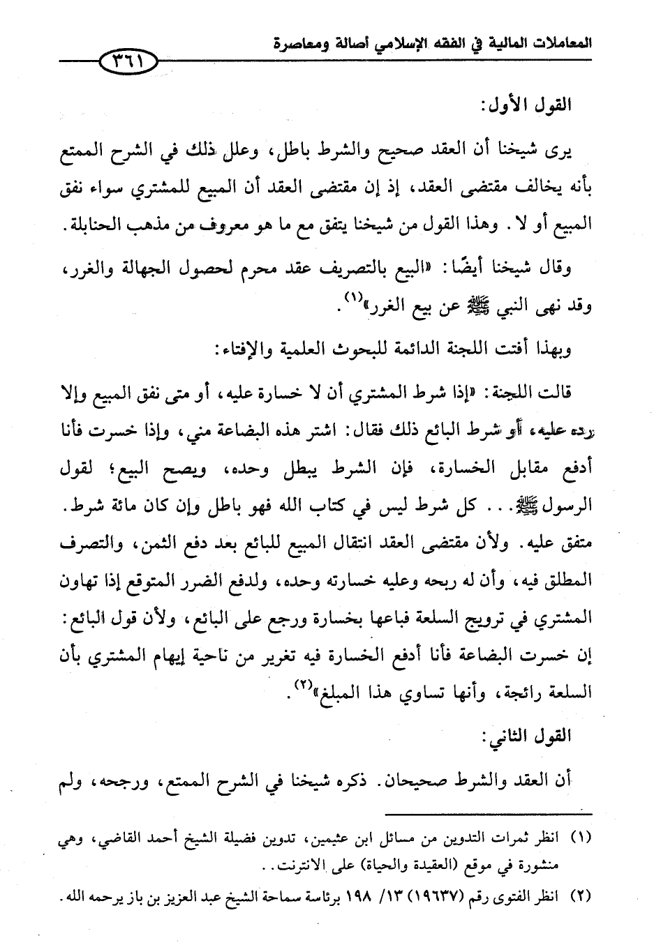 (¬٢) انظر الفتوى رقم (١٩٦٣٧) ١٣/ ١٩٨ برئاسة سماحة الشيخ عبد العزيز بن باز يرحمه الله.